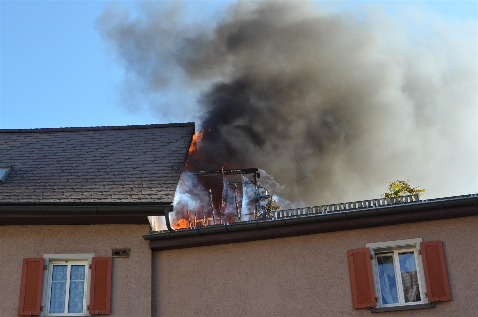 Domat/Ems Brand auf Dachterrasse in Mehrfamilienhaus