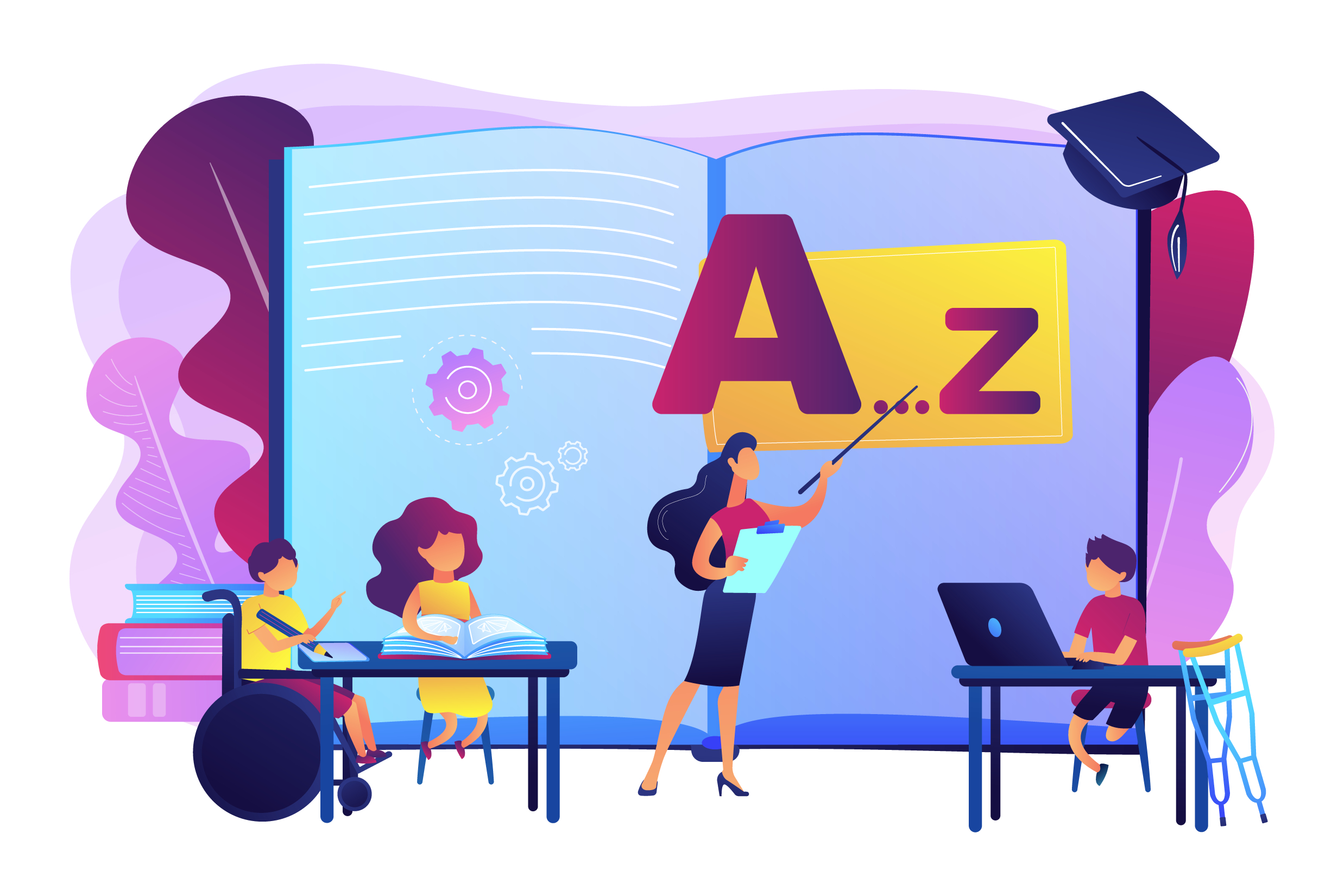 imagen de un ejemplo de educación inclusiva que muestra un niño en silla de ruedas en un aula