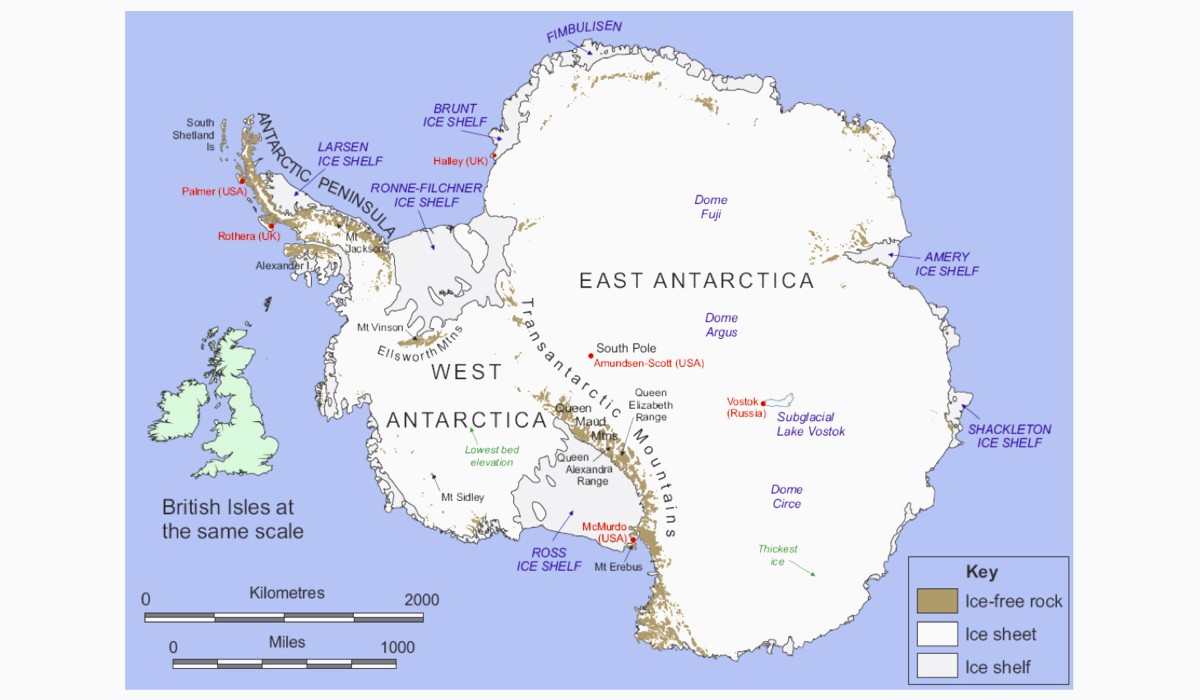 Tuttavia, l'Antartide, il Polo Sud, risulta essere leggermente più freddo rispetto all'Artico, il Polo Nord, con medie invernali che possono scendere molto al di sotto dello zero. Infatti, la temperatura media annuale al Polo Sud è di -49 °C, mentre al Polo Nord è di -34 °C. Queste differenze sono principalmente dovute alla geografia e.