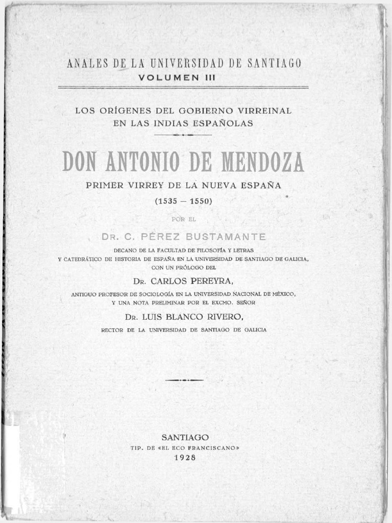 Los Orígenes Del Gobierno Virreinal en Las Indias Españolas Don Antonio de Mendoza, Primer