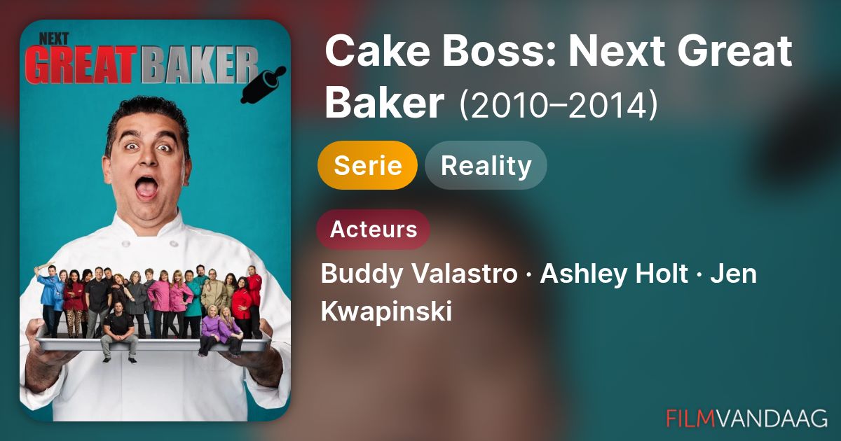 Next Great Baker. Cake Boss Buddy Valastro puts the baking and decorating skills of 10 talented pastry chefs to the test through a series of increasingly difficult challenges as they compete to be crowned as the Next Great Baker. Genre. Baking Competitions Food. Rating. TV-PG.