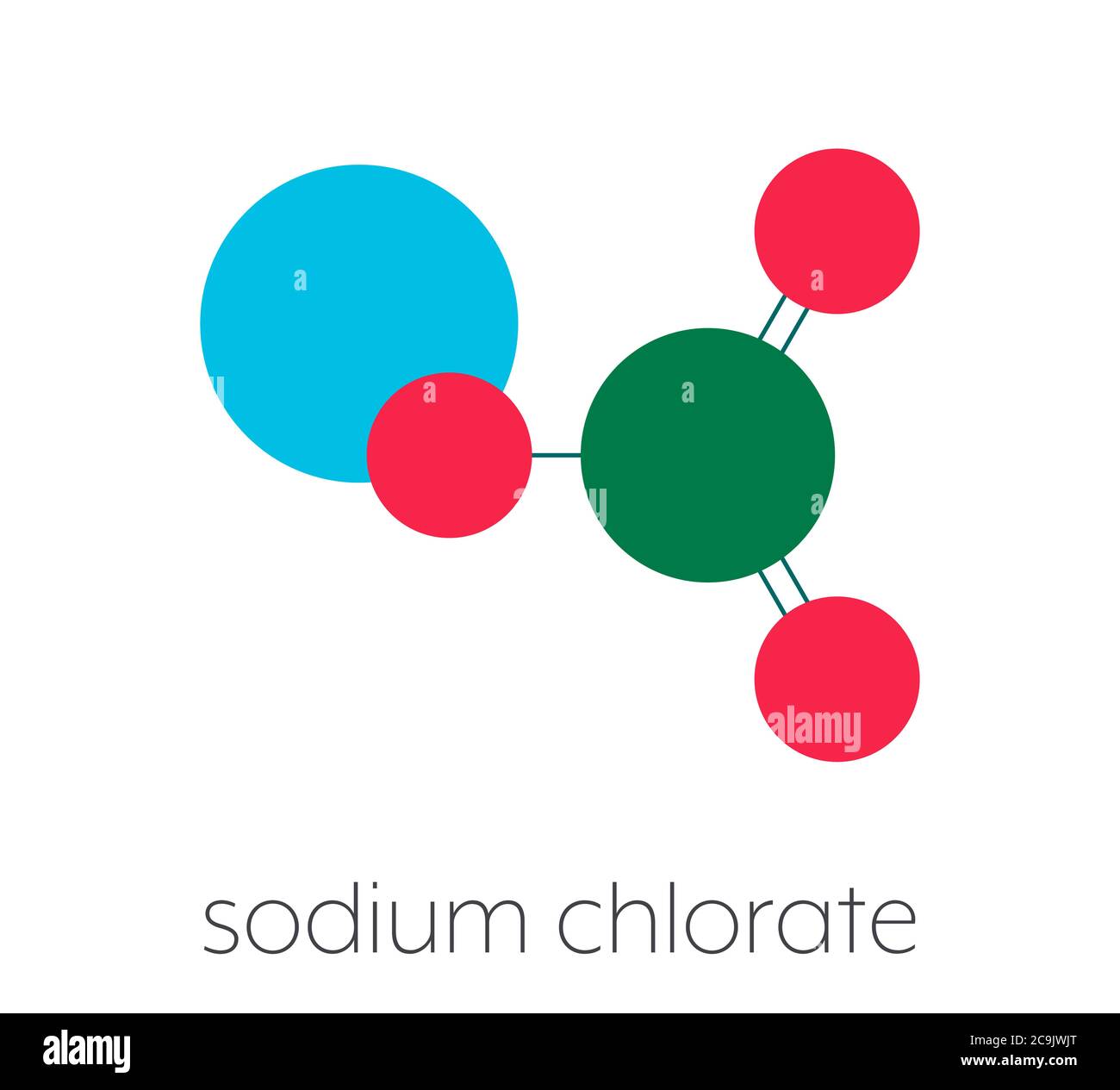 Sodium chlorate salt, chemical structure. Blue skeletal formula on white background Stock Photo