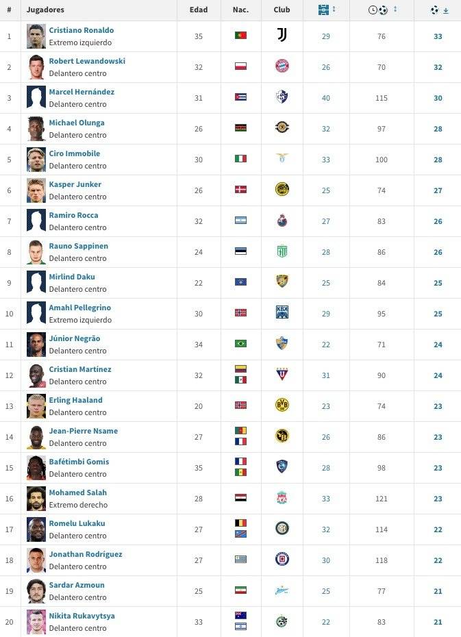 IMAGEN Alta clasificación de Cristian Martínez Borja entre los goleadores del 2020 en el mundo