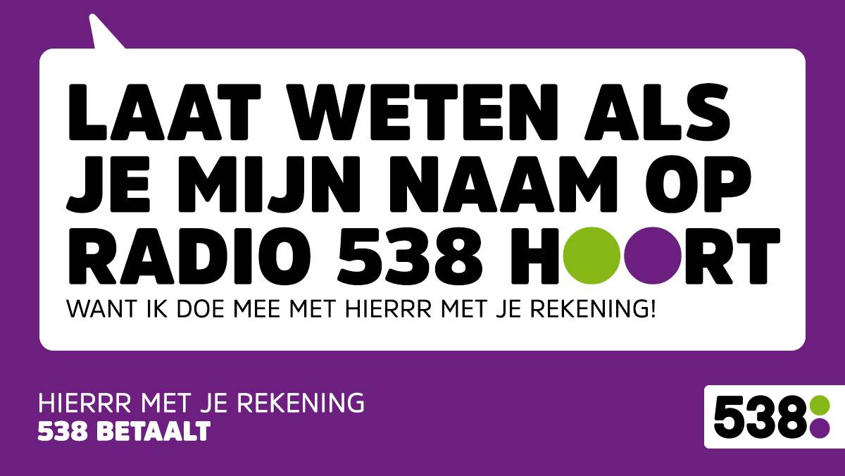 Radio 538. · January 3 ·. Hierrr Met Je Rekening komt terug! Stuur nu de rekening, bon of factuur van je grootste miskoop, gekke hobby of bijzondere reis in, want 538 betaalt vanaf 22 januari elke dag rekeningen! 538.nl.