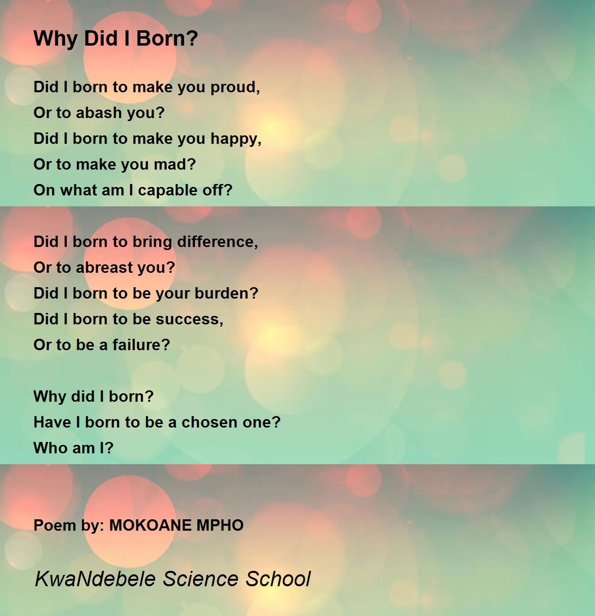 Why Did I Born? Why Did I Born? Poem by KwaNdebele Science School