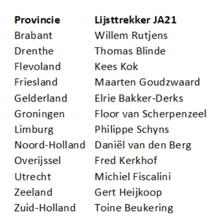 Chris Aalberts on Twitter "Nieuws. Lijsttrekkers van JA21 voor de Provinciale