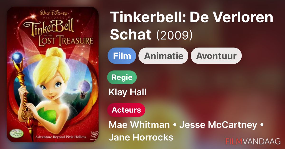 Tinker Bell and the Lost Treasure (2009) Animatie / Avontuur | 81 minuten. 3,31 94 stemmen. + Mijn stem. 10 reacties. Alternatieve titel: Tinkerbell: De Verloren Schat. Oorsprong: Verenigde Staten. Geregisseerd door: Klay Hall. Met onder meer: Mae Whitman, Kristin Chenoweth en Pamela Adlon.