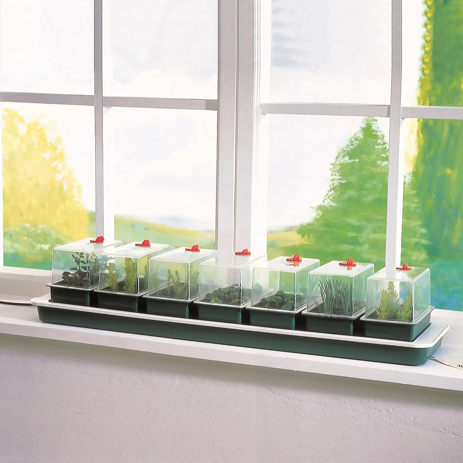 Features and Benefits. 7 mini propagators - Allows you to conveniently grow several varieties of plants from the same unit. Heated base unit - Raises compost temperature by around 8°C and evenly distributes the heat for better growth. Compact design - Means you can get all the benefits of windowsill light conditions without the cold and.